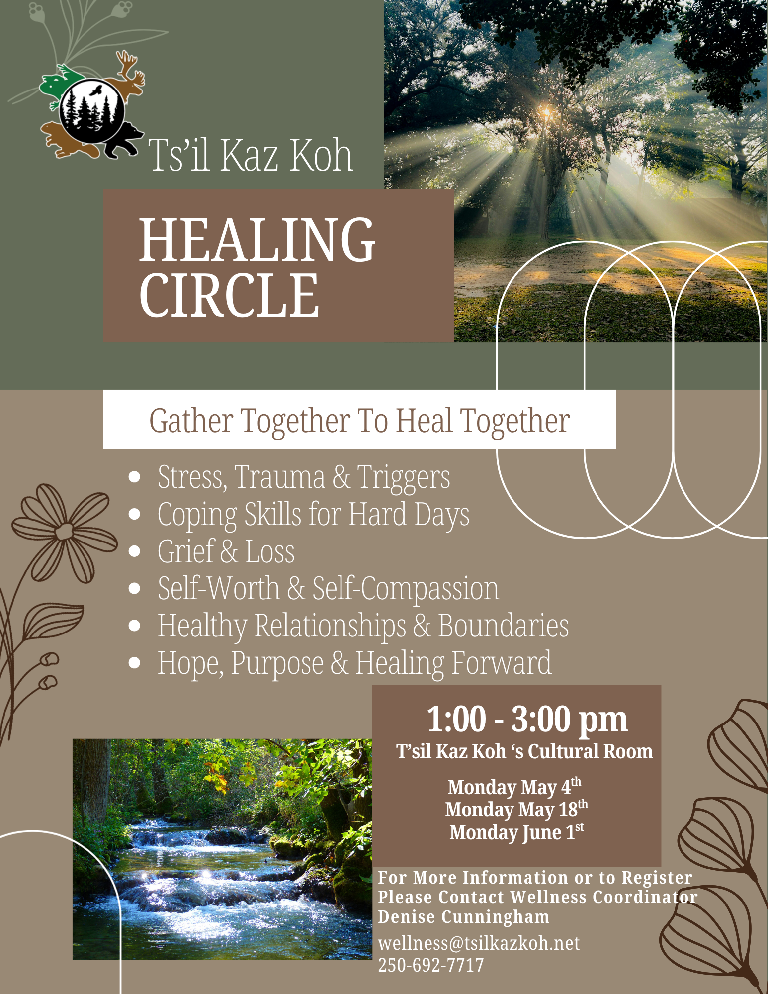 To register, please contact Wellness Coordinator Denise at wellness@tsilkazkoh.net or call the Band Office at 250-692-7717.